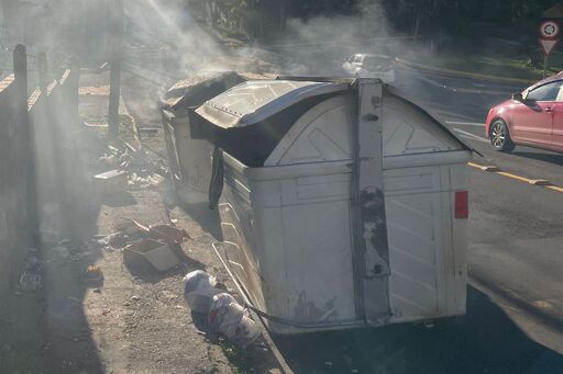 Um contêiner de lixo foi incendiado na manhã desta sexta-feira (10) em Santa Maria. O caso ocorreu no cruzamento das ruas Senador Cassiano do Nascimento e Manoel Gomes Carneiro, no Bairro Menino Jesus.