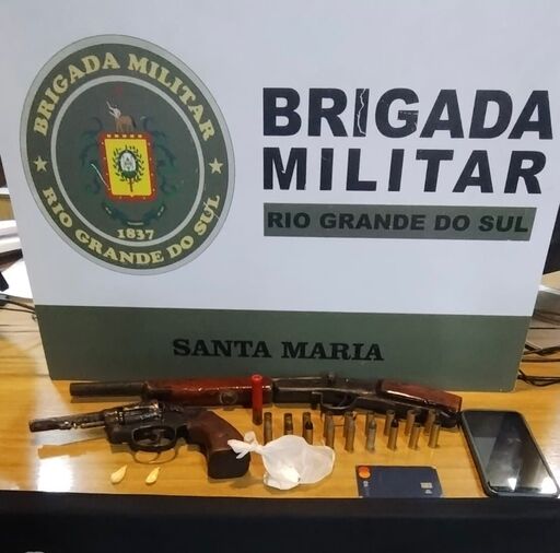 Na abordagem foi encontrado na cintura do suspeito uma garrucha artesanal municiada com um cartucho intacto de calibre 36. Além da arma foram localizados no bolso das vestimentas do jovem três porções de cocaína totalizando 8 gramas. Na residência localizaram um revólver calibre 38 municiado com cinco cartuchos e onze estojos de munições, todas de calibre 38.