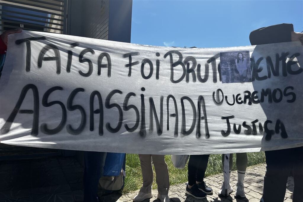 Cercados de emoção, familiares levaram bandeiras mostrando indignação pela morte da jovem, na época com 26 anos. Entre os familiares presentes que aguardavam a liberação para subir ao local do júri, o irmão de Taísa, Dierson Macedo Paula, 37 anos, aguardava em um canto, de cabeça baixa. O semblante abatido refletia os oito anos sem a irmã, com quem convivia diretamente.