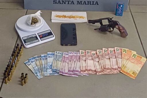 Com o adolescente, foram apreendidos um revólver calibre 38, marca Rossi e municiado, 25 munições do mesmo calibre, seis estojos deflagrados, 31,6 gramas de maconha, 4,8 gramas de crack, R$ 165 em dinheiro, uma balança de precisão, um celular e uma bolsa vermelha.