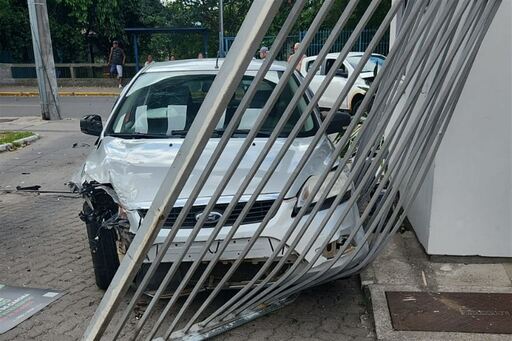 Ninguém ficou ferido no acidente, mas os veículos e o portão tiveram danos materiais consideráveis.