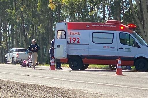 Mulher fica ferida em colisão entre motocicleta e automóvel na BR-287