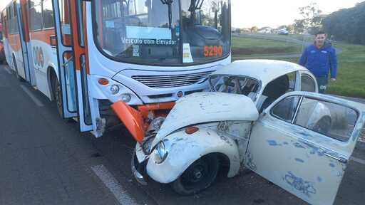 Um acidente entre um ônibus de transporte coletivo e um Fusca da cor branca ocorreu por volta das 8h da manhã desta segunda-feira (17), na RSC-287, a faixa nova de Camobi, próximo ao viaduto que dá acesso à BR-158.