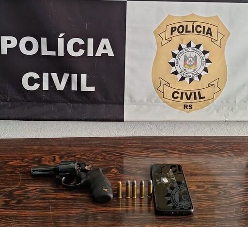 No local, além do revólver calibre 38, foram apreendidos munições e um celular. Ainda conforme a Polícia Civil, o morador é investigado por ameaçar a ex-companheira por meio de vídeos publicados nas redes sociais.