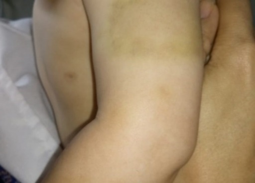 Em 31 de julho, uma ligação anônima relatou à Brigada Militar que um bebê não parava de chorar. Ao chegarem na casa da família, os policiais perceberam hematomas no braço e na perna da menina, que é filha somente da mulher. A criança foi encaminhada ao Hospital de Caridade Nossa Senhora Auxiliadora para atendimento médico.