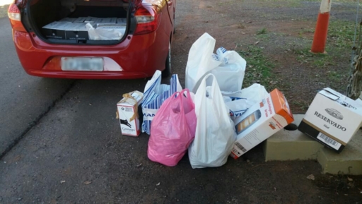 Durante abordagem, que ocorreu em um trevo de acesso ao município, foram encontradas 97 garrafas de bebidas alcoólicas - de vinho e uísque - e um aquecedor elétrico no veículo. Ainda dentro do carro, os policiais encontraram casacos, mantas, meias e outros objetos, todos vindos do Uruguai.