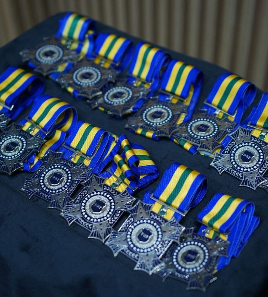 O palco do Teatro Elisabeth Rosenfeld também foi lugar para homenagear policiais rodoviários federais e policiais militares pela bravura ao enfrentar o cenário desafiador das enchentes no Rio Grande do Sul. Eles receberam a Medalha do Mérito PRF, ou Medalha Washington Luís, que é uma condecoração concedida pela instituição a servidores, órgãos parceiros e personalidades que se destacaram por serviços prestados à PRF e à segurança pública.