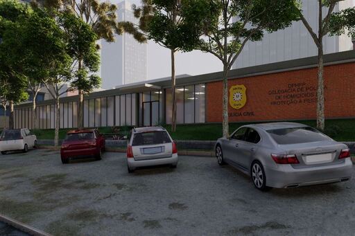 Arte gráfica mostra como deveria ficar o antigo prédio da Daer, na Avenida Medianeira, com a instalação da Central da Polícia Civil. Atualmente, aluguel de prédios para DPs custa R$ 70 mil por mês