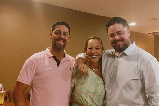 Felipe a esquerda com a mãe Jane e o irmão William a direita