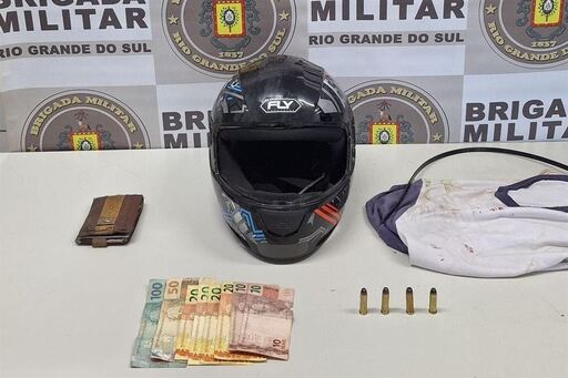 Durante a abordagem, os policiais apreenderam um capacete, uma motocicleta Honda CG 150 Fan, quatro munições calibre .38, um telefone celular e uma quantia em dinheiro.