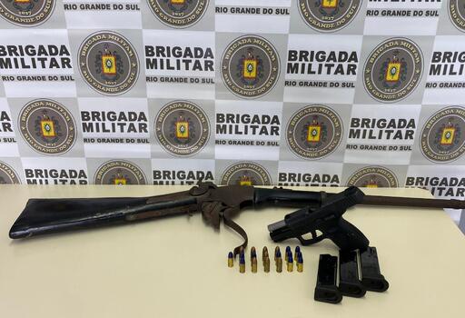 Questionado sobre a existência de armas na residência, o suspeito confirmou e ordenou que seu filho de 13 anos entregasse a arma à guarnição. A arma, uma pistola calibre 9mm, estava carregada e com munição na câmara, esta apresentando sinal de percussão, indicando tentativa de disparo. No interior da casa, também foi localizado e apreendido um rifle pendurado na parede.