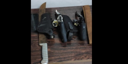 Os ocupantes do veículo foram abordados e identificados. Eram três jovens de 18, 22 e 26 anos. Durante revista, os policiais encontraram dois revólveres calibre 38 e um facão.