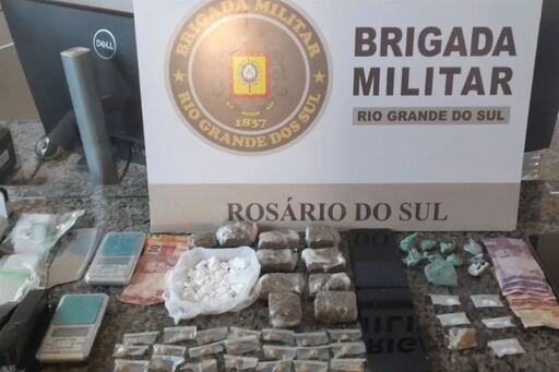 Em seguida, a Brigada se deslocou até a rua Rio de Janeiro, onde prendeu outros dois suspeitos, de 20 e 30 anos. No imóvel, foram encontrados 241 gramas de maconha, 5 gramas de cocaína, 9 gramas de crack, além de embalagens plásticas, grampeadores, duas balanças de precisão e uma faca. Conforme a polícia, o terceiro envolvido recebia drogas para revender.