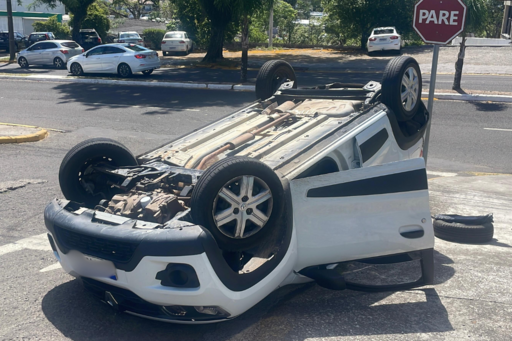 Veículo capota após colisão em esquina da Avenida Medianeira em Santa Maria