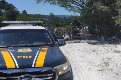 Um veículo bitrem tracionado por um caminhão trator Volvo/Fh 500 6X2T com placas de São Luiz Gonzaga saiu da pista e tombou no km 345 da BR-287, em Jaguari, na tarde de segunda-feira (23). O veículo era conduzido por um homem de 45 anos, que não se feriu.