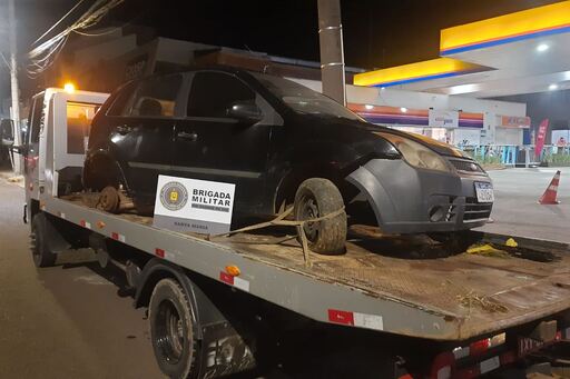 Veículo sem motor e rodas é recuperado pela Brigada Militar em Santa Maria