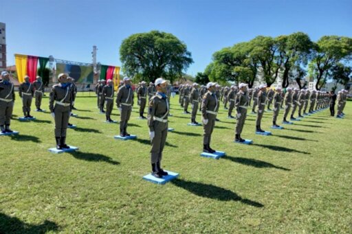 O 1º Regimento de Polícia Montada (1º RPMon) deve receber o reforço de cerca de 10 novos policiais militares (PMs) formados pela turma de 2020 da Escola de Formação e Aperfeiçoamento de Sargentos da BM (Esfas) de Santa Maria . A estimativa é do comandante do 1º RPMon, tenente-coronel Cléberson Braida Bastianello. Segundo ele, ficará a critério do Comando do Estado Maior da BM a definição do número de PMs que irão reforçar o policiamento nas ruas de cada um dos sete regimentos espalhados pelo Rio Grande do Sul (RS). Na manhã desta segunda-feira, foram realizadas formaturas de 860 novos policiais nas cidades Porto Alegre, Montenegro, Osório, Santa Maria, Rio Pardo, Passo Fundo e Santa Rosa. Em Santa Maria, a formatura ocorreu no campo do 1º RPMon na Rua Pinto Bandeira.