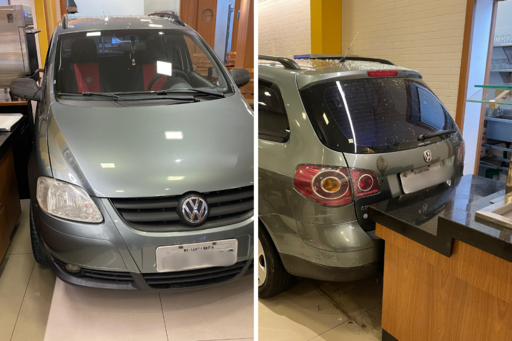 Com a força do impacto, o guichê do restaurante, que fica junto à porta de entrada, foi arrastado até os fundos do local. A Brigada Militar foi acionada para atender a ocorrência.