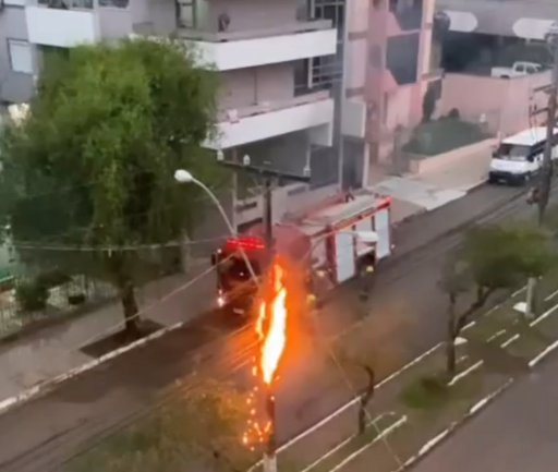 VÍDEO: poste pega fogo na manhã desta terça-feira no Bairro Patronato