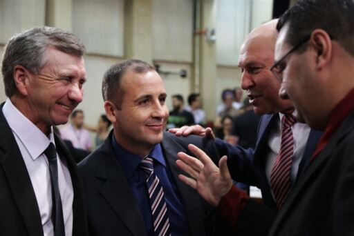 Vereador Alemão do Gás (esq.), que ajudou eleger Alexandre Vargas (centro), pode dar voto decisivo, hoje, ao outro bloco