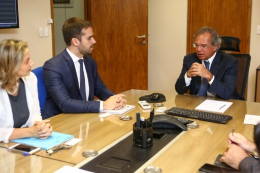 Eduardo Leite (centro) falou sobre contas do governo ao ministro Paulo Guedes