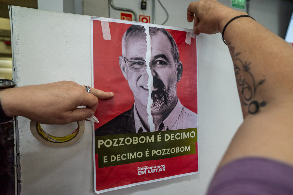 Desde o início da tarde, representantes das categorias se faziam presentes na Câmara de Vereadores. Os servidores ocupavam boa parte das galerias do Plenário, os corredores da Casa e o entorno do prédio. Nas mãos, carregavam cartazes com manifestações como “Retira!” ou “Reaja ou sua Previdência acaba”. Também faziam referência a membros do governo e a vereadores como “inimigos do povo”.