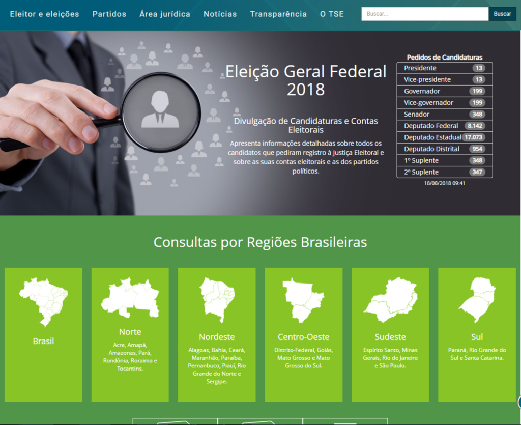 Confira em detalhes como o eleitor pode buscar informações sobre os candidatos no site do Tribunal Superior Eleitoral. No portal (em que aparece a data de 2016, mas é relativo à eleição de 2018 mesmo), há dados sobre o patrimônio, as propostas , eleições anteriores e teto de gastos: