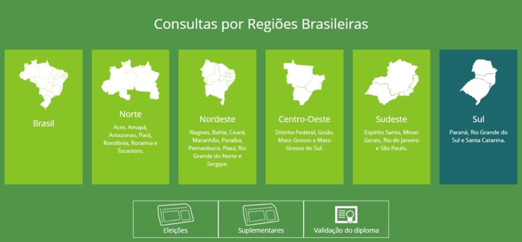 1. Ao acessar o site, o eleitor deve escolher a região de interesse da pesquisa. Para o cargo de governador do Estado do Rio Grande do Sul, por exemplo, deve-se escolher a Região Sul.