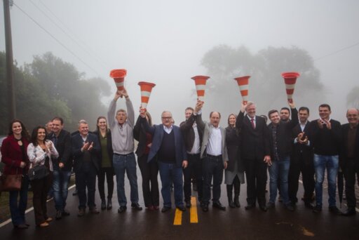 Estou em Silveira Martins, onde a comunidade celebra a conclusão do restauro da rodovia VRS 804. São 12,8 quilômetros de estrada recuperados. Seguimos pela região, para vistoriar outras obras do Crema-Santa Maria. Chuva e frio não atrapalham a festa da comunidade. pic.twitter.com/DTVVlrob9u