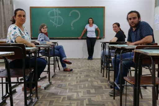 Os professores (da esquerda para direita) Elisandra, Carluza, Rosa, Francieli e Jâneo enfrentam dificuldades para pagar as contas