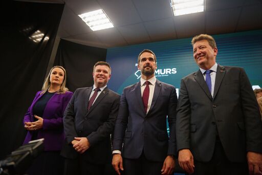O governador Eduardo Leite discursou também. De forma breve, usou o momento para reforçar os programas do governo focados nas cidades gaúchas e também anunciou um reforço justamente aos municipios: