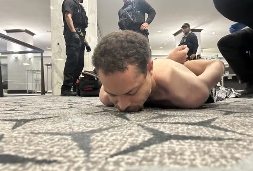 O presidente dos Estados Unidos, Donald Trump, divulgou uma foto do atirador de 30 anos que foi detido após tentar invadir um jantar que era promovido para correspondentes internacionais no hotel Hilton, na noite deste sábado (25), em Washington. O homem está deitado no chão e imobilizado.