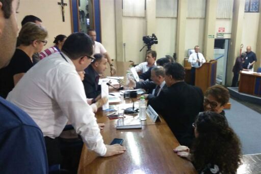 O pedido de abertura de processo de cassação do prefeito foi encaminhado a plenário pelo presidente da Casa, Alexandre Vargas (PRB), e lido na sessão de ontem. Alexandre e a primeira secretária da Mesa Diretora, Luci Duartes (PDT), Tia da Moto, revezaram -se na leitura da denúncia, que tem 12 páginas.