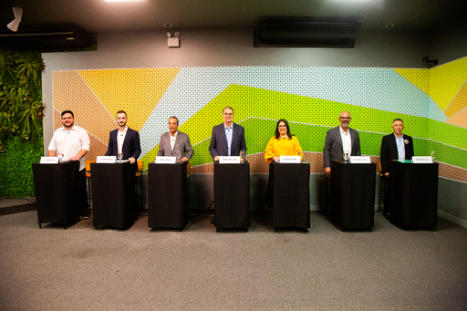 O Grupo Diário promoveu, nesta sexta-feira (16), o primeiro debate entre os candidatos a prefeito de Santa Maria. O encontro reunirá os sete postulantes ao cargo: Alidio da Luz (PSol), Giuseppe Riesgo (Novo), Moacir Alves (PRD), Paulo Burmann (PDT), Roberta Leitão (PL), Rodrigo Decimo (PSDB) e Valdeci Oliveira (PT).
