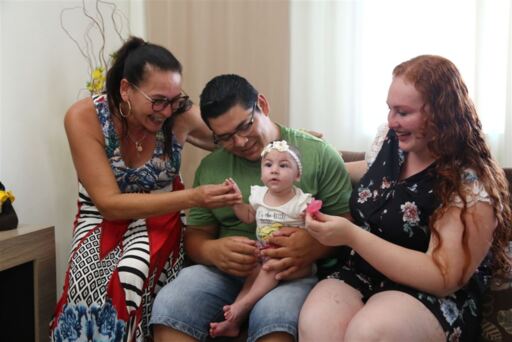 Com 35 semanas de gestação, a bolsa estourou, mas Rafaela não percebeu. Foi só depois de ter passado a noite inteira com dores e de ir até a emergência do Husm que descobriu que estava em trabalho de parto. No dia seguinte ao nascimento, Lívia foi internada na UTI. Hoje, ela faz tratamento no hospital e com especialistas (oftalmologista, fonoaudióloga, fisioterapeuta, neurologista e terapeuta ocupacional) e toma cinco medicações diárias contra a toxoplasmose. Em função da doença, ela perdeu a visão do olho direito e tem microcefalia, mas nada que tire o sorriso do rosto da pequena, sempre atenta a tudo a sua volta.