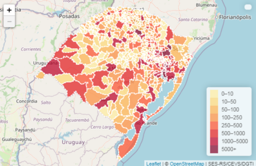 A incidência do novo coronavírus, que já atinge 495 dos 497 municípios do Estado, é de 1.781,8 casos para cada 100 mil habitantes. Santa Maria está na 10ª posição no ranking de cidades com o maior número de confirmações. A incidência da doença entre os santa-marienses é de 1.568,1 para cada 100 mil habitantes.