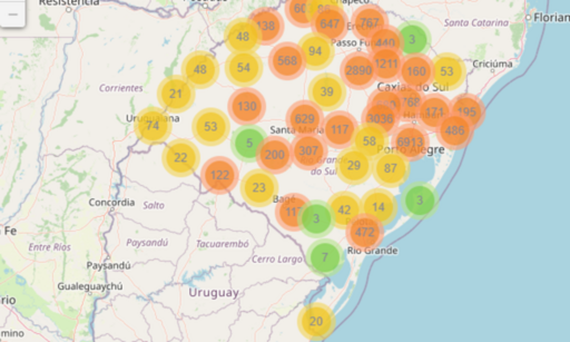 No ranking de cidades com mais casos confirmados, Santa Maria está no 10º lugar, com 560 infectados. Entretanto, o número ainda é menor do que o divulgado pela prefeitura, que confirma 579 casos. Já em relação aos óbitos, a cidade sobe para a 7ª posição, com 17 mortes até agora.