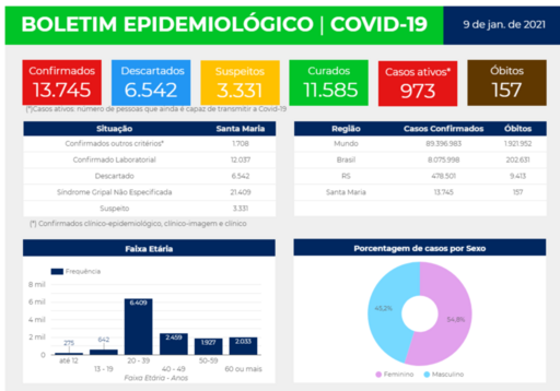 Santa Maria tem 157 mortes e 13.745 casos de Covid-19