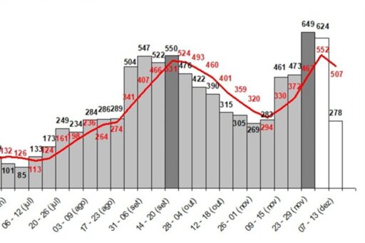 • A semana de 23 a 29 de novembro foi a recordista em novos casos durante a pandemia, com 649, e deve ser superada pela seguinte, que já acumula 624.