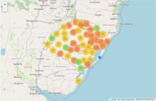 Na lista de casos confirmados, foram incluídos 17 de Santa Maria, 16 de Cruz Alta, 15 de São Gabriel, 10 de Santiago, 7 de Caçapava do Sul, 3 de Lavras do Sul e 1 de São Sepé. Santa Maria segue na 8ª posição no ranking de cidades com o maior número de casos. De acordo com a SES, são 504 confirmados e 14 mortes. Os dados divergem dos informados pela prefeitura porque os números demoram para serem computados pelo Estado.