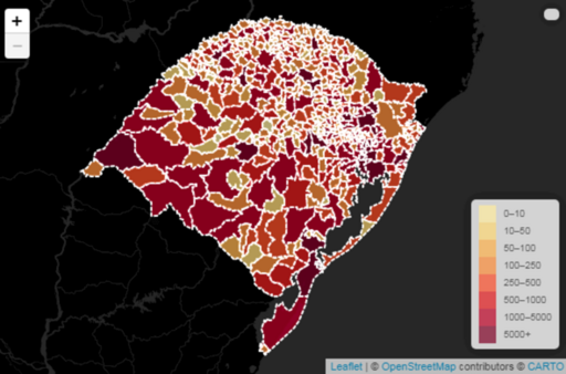 A ocupação geral de leitos de UTI no Rio Grande do Sul está em 102,8%, de acordo com informações do painel de monitoramento da SES. São 95,7% de ocupação nos leitos do SUS e 119,6% em leitos privados. É o quinto dia consecutivo com ocupação acima do limite. São 3.089 pacientes internados para 3.005 leitos. Destes, 2.140 têm diagnóstico positivo para o coronavírus e outros 156 casos são suspeitos. Há 15 dias, eram 1.035 gaúchos internados com confirmação da doença em UTIs, o que representa um aumento de mais de 100% no número de internações por Covid.