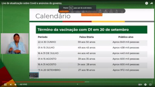O governador do Estado, Eduardo Leite (PSDB), divulgou uma nova previsão de vacinação de todos os gaúchos acima de 18 anos. A nova estimativa é que, até 20 de setembro, a população receba a primeira dose da vacina contra a Covid-19 até o dia 20 de setembro. A previsão anterior era até o fim de setembro.