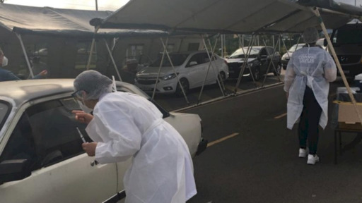 Vacinação em drive-trhu no estacionamento do Shopping Praça Nova