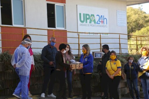 Foram entregues, na tarde desta segunda-feira, 95 protetores faciais para os profissionais que estão na linha de frente do enfrentamento à Covid-19 em Santa Maria. Os chamados face shields, que protegem todo o rosto, foram confeccionados pela Universidade de Caxias (UCS), em um projeto patrocinado por empresários da Serra Gaúcha e distribuídos pelo Lions. Foram entregues 50 protetores na Unidade de Pronto-Atendimento 24 Horas de Santa Maria, 30 unidades no Pronto-Atendimento do Bairro Patronato, e 15 protetores no Pronto-Atendimento do Bairro Tancredo Neves.