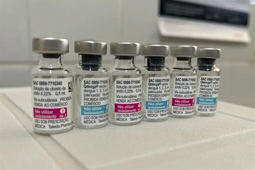 A primeira remessa da vacina contra a dengue que será oferecida pelo Sistema Único de Saúde (SUS) chegou ao Brasil no último sábado (20). O governo recebeu 720 mil doses do imunizante Qdenga, oferecidas sem cobrança pelo laboratório japonês Takeda Pharma.
