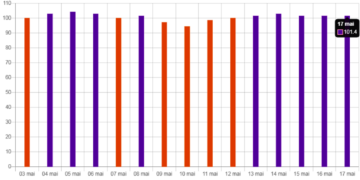 Gráfico mostra o índice de internações em leitos clínicos Covid-19 nas últimas duas semanas