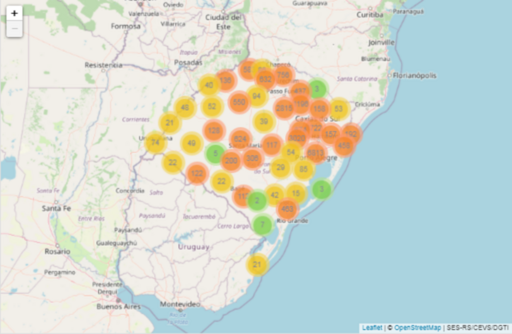 Santa Maria aparece na 10ª posição no ranking de cidades com o maior número de casos. Segundo a SES, são 556 confirmações e 17 mortes. Os números divergem dos informados pela prefeitura porque os dados demoram para serem computados pela Secretaria Estadual.