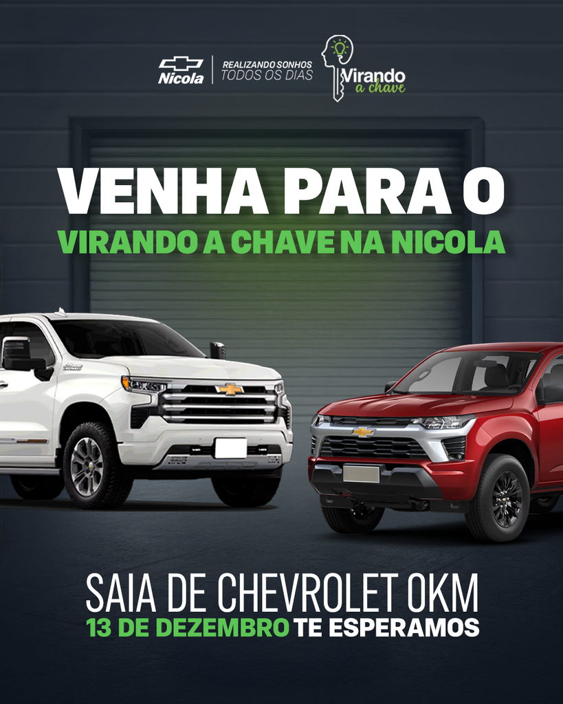 Mais do que uma mostra de veículos, o “Virando a Chave na Nicola” é um convite para que cada visitante visualize novas possibilidades, com segurança e orientação especializada.Seja 0 km ou seminovo, o seu próximo Chevrolet pode estar mais perto do que você imagina.
