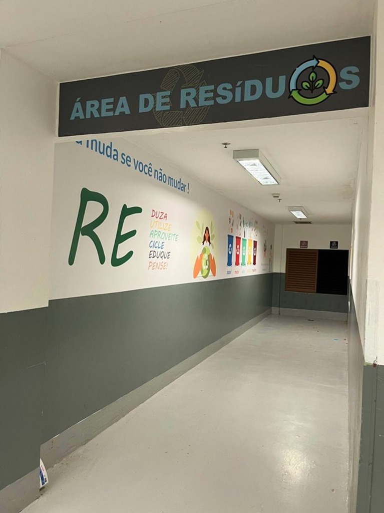 Além disso, um programa de separação foi implementado com os lojistas, em que cada tipo de material é diferenciado pela cor do saco plástico, conforme as normas do Conselho Ambiental do Meio Ambiente. Esse esforço é estendido aos lojistas através de uma equipe dedicada que realiza visitas periódicas para garantir a correta segregação dos resíduos.