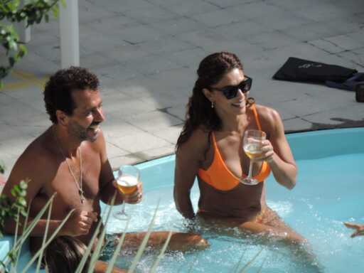 2 - Logo no primeiro final de semana em Jaguari, moradores já flagraram o elenco tomando banho de piscina. E, como os artistas não são bobos, aproveitaram também para tomar uma cervejinha.